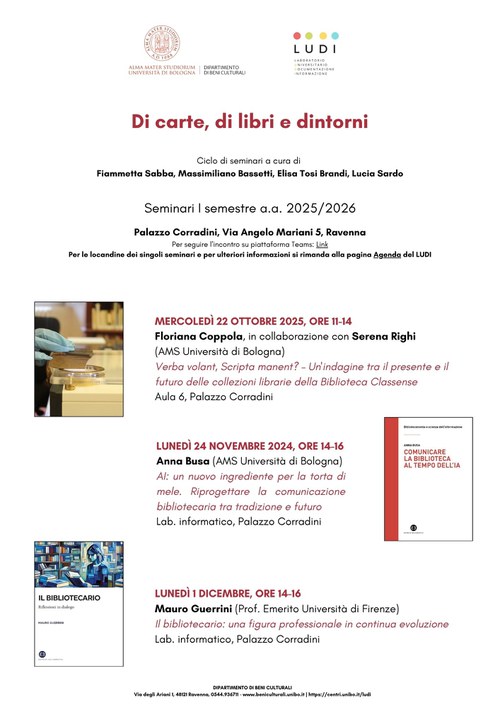 Ciclo di seminari a cura di Fiammetta Sabba, Massimiliano Bassetti, Elisa Tosi Brandi, Lucia Sardo